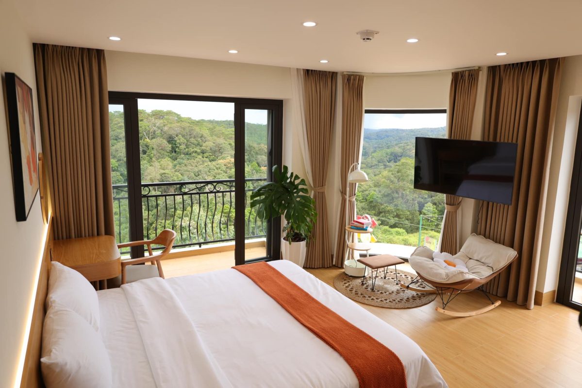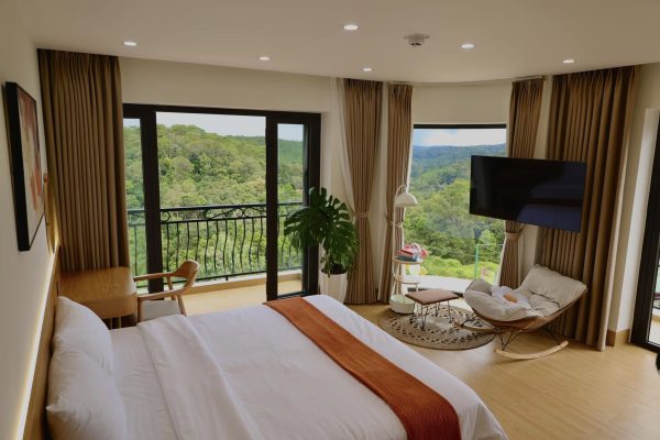 Một trong những yếu tố làm nên sức hút của La Romance Măng Đen chính là vị trí đắc địa tại Kon Plong, mang đến tầm nhìn núi non ngoạn mục. Tưởng tượng mỗi sáng thức dậy, bạn có thể mở cửa sổ và chiêm ngưỡng khung cảnh mây mù bảng lảng trên đỉnh núi, hay những buổi chiều hoàng hôn rực rỡ nhuộm vàng cả một vùng trời. Đây chắc chắn sẽ là những khoảnh khắc khó quên, giúp bạn tái tạo năng lượng và tìm thấy sự bình yên trong tâm hồn.