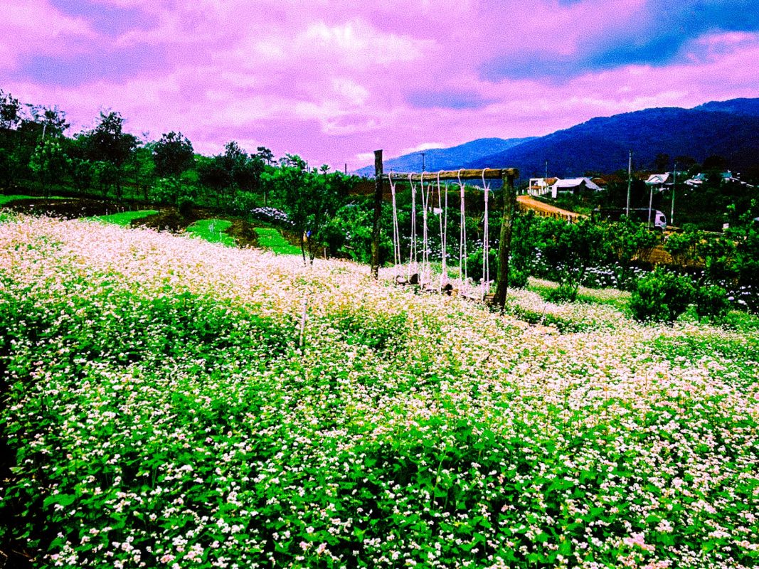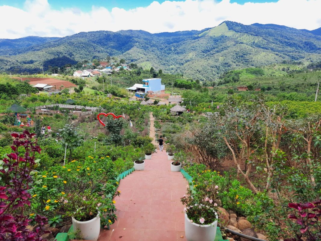 Với view nhìn ra núi Ngọc Lễ hùng vĩ, Ê Ban Farm đẹp như một bức tranh rực rỡ.