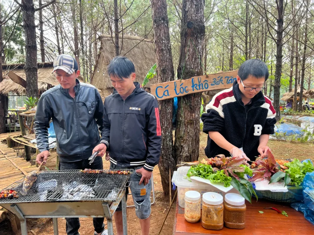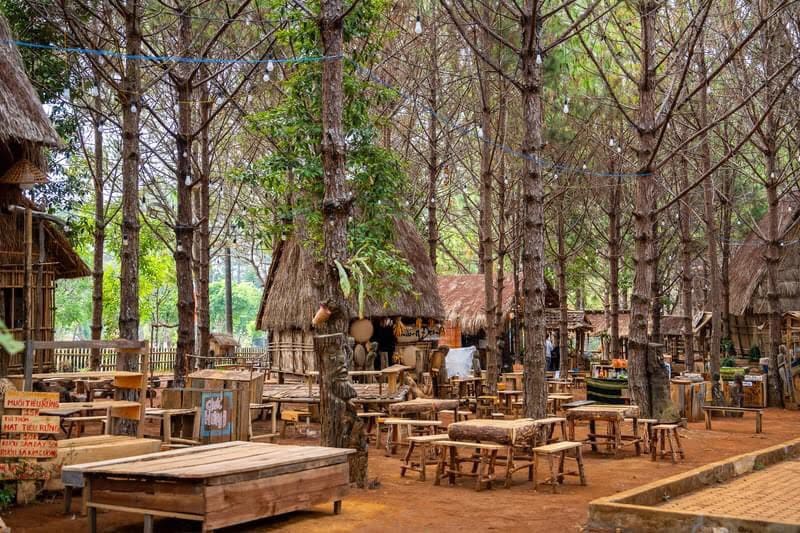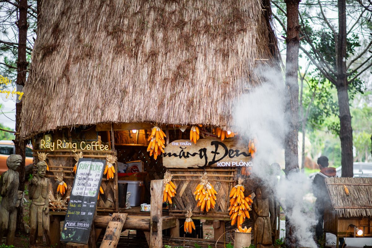 Đến đây, du khách sẽ được khám phá không gian ẩm thực đặc sắc với các món đặc sản Tây Nguyên như gà nướng cơm lam, cá niên nướng, rượu cần,…