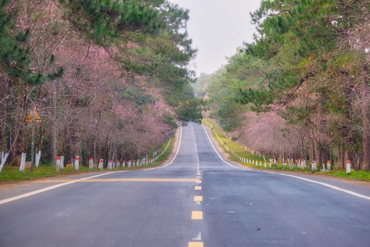 Đến Măng Đen, bạn sẽ bắt gặp hình ảnh hàng nghìn gốc mai anh đào nở rộ khắp thị trấn, trong các khu rừng, hay thác, hồ.