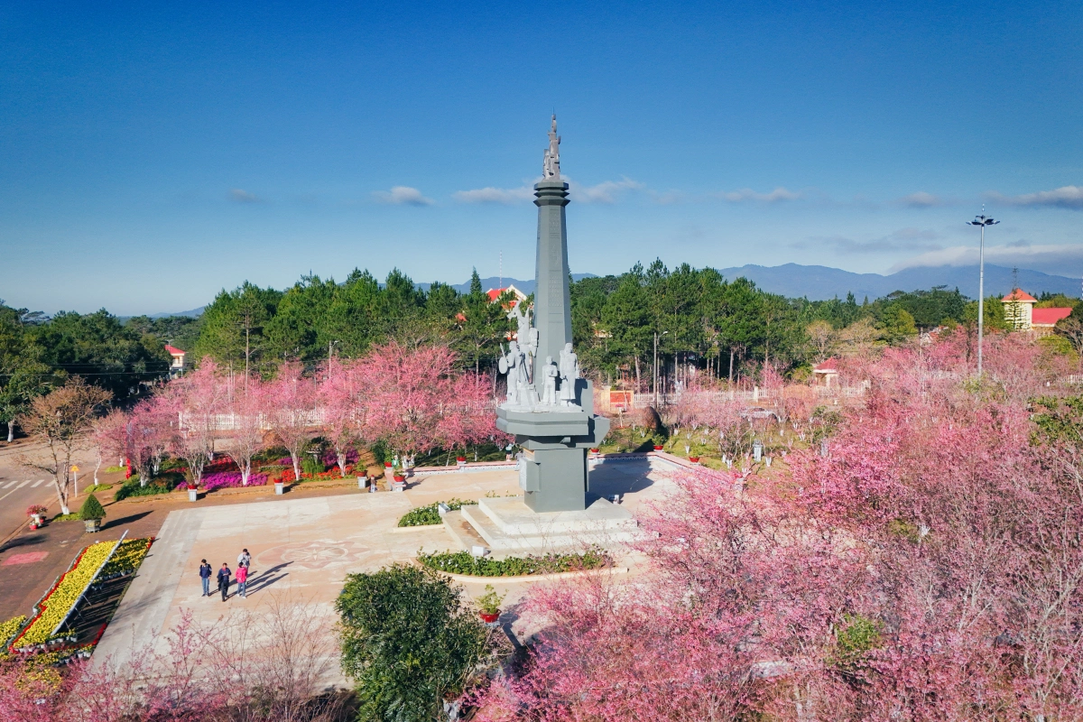 Hoa mai anh đào nở rộ khắp quảng trường trung tâm