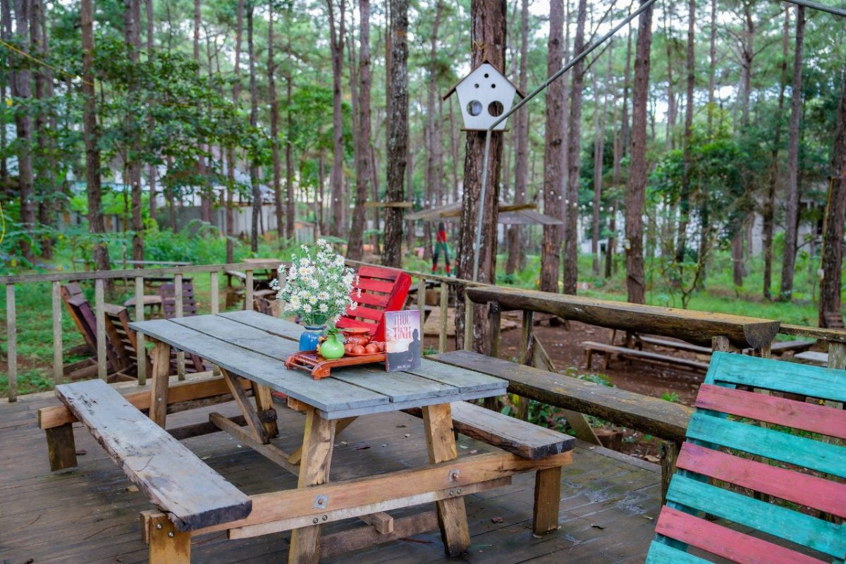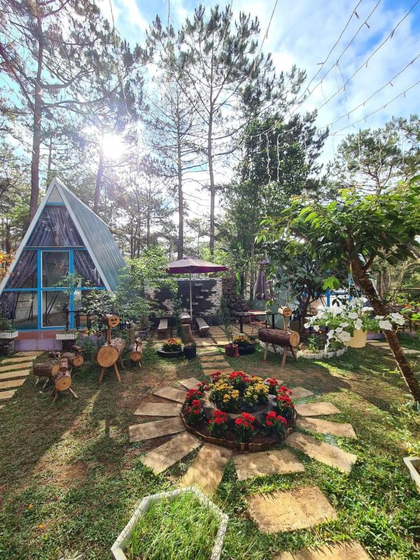 Mỗi căn phòng đều sở hữu “chiếc view xinh” như view đồi thông, view sân vườn. Bạn có thể mở toang cửa số, đón ánh bình minh vào sáng sớm. Nhâm nhi tách cà phê nơi góc sân vườn và chill chill cùng những điệu nhạc.