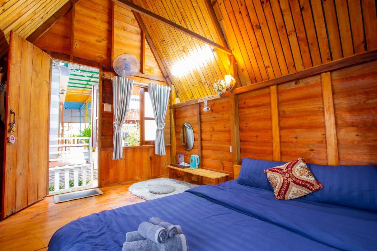 Mỗi căn nhà gỗ tại homestay đều có tầm nhìn ra vườn hoặc thành phố.