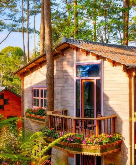 Nằm ẩn mình dưới những tán thông, Rosie Garden Mang Den những căn nhà gỗ mang đậm phong cách châu Âu.
