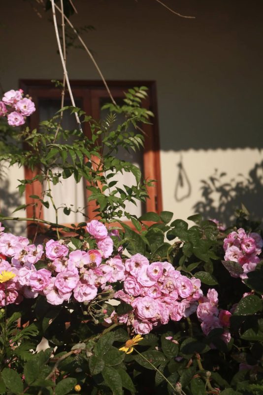Trong khuôn viên homestay trồng các loại hoa nở theo mùa, nên đến đây vào mỗi thời điểm du khách sẽ thấy nơi đây lại khoác lên mình một chiếc áo mới.