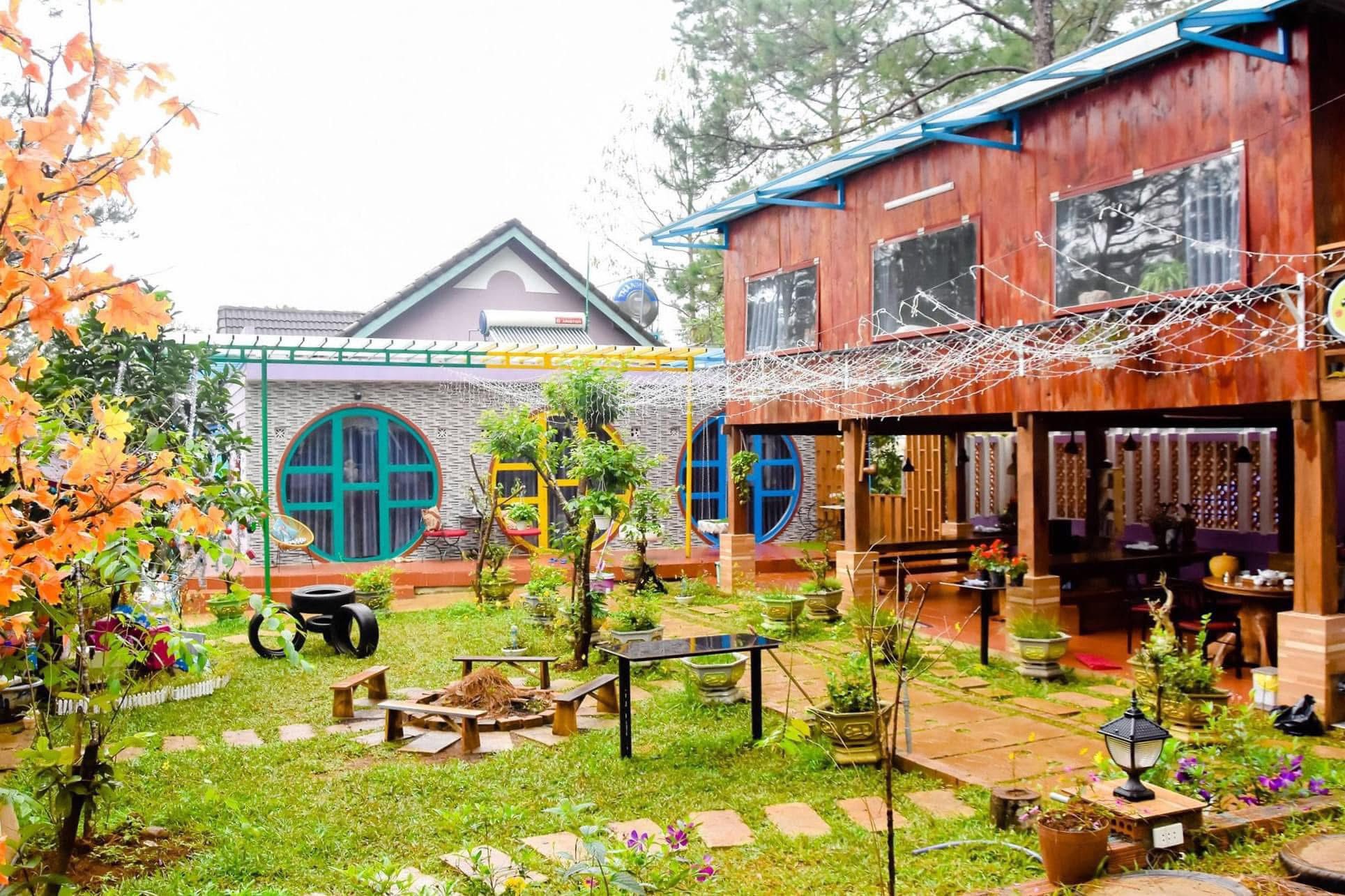 Xung quanh homestay là những đồi rừng thông xanh mướt, tạo nên một bức tường chắn tự nhiên, giúp không khí luôn mát mẻ và trong lành. Không gian này đặc biệt thích hợp cho những buổi picnic, tản bộ hay đơn giản là tìm một góc nhỏ để đọc sách, tận hưởng sự tĩnh lặng hiếm có.